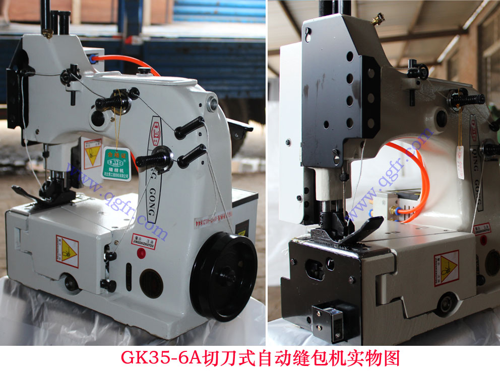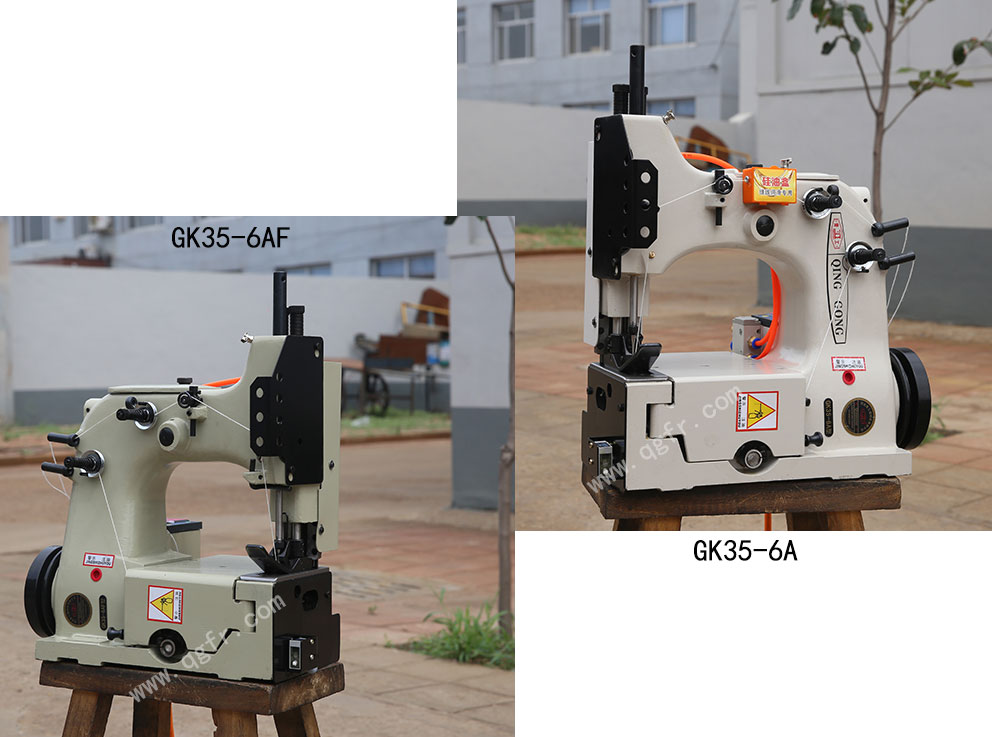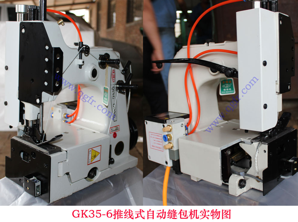 c.GK35-6AF型反方向自動(dòng)縫包機(jī),在GK35-6A自動(dòng)縫包機(jī)基礎(chǔ)上開(kāi)發(fā)的一種新型反方向縫包機(jī)。該機(jī)可以與GK35-6A型正機(jī)相配合,在同一立柱上在兩側(cè)同時(shí)縫合袋口。