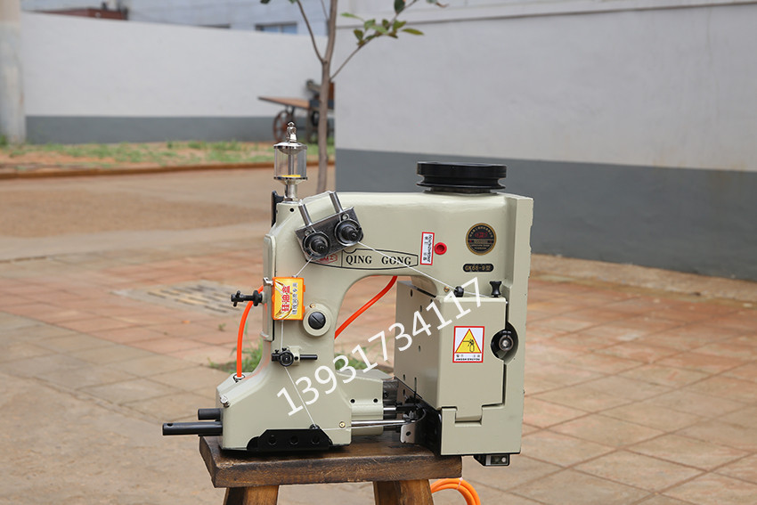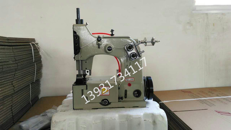 工作過程:裝配在輸送機上,當裝滿物料的編織袋到達離縫包機10厘米處,在光控開關控制下縫包機自動啟動,縫合袋口,縫好每一袋時,切刀自動剪斷線辮,縫包機自動停機。