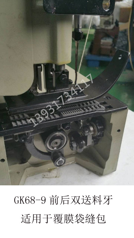 GK68-9型覆膜袋自動縫包機集自動開機、自動停機、自動剪線于一體,并且在原GK35-6A自動縫包機的基礎上改進了切刀結構,采用內藏式可調切刀,可切斷大寬度包邊紙。切刀位置可以調整,減少了切刀磨損后的更換頻率。同時GK68-9采用雙壓腳,雙送料牙,強勁可靠的送料能力特別適用于編織袋雙面覆膜或者折邊等可能造成縫合過程中打滑、送料遲滯的情況。