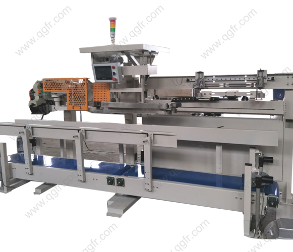 本機適合灌裝包裝袋袋口寬度為400-650毫米、高度為550-1050毫米的顆粒、粗粉狀物品的自動化包裝。自動完成開口加壓、袋夾緊、袋封口、輸送,折邊、送標簽、縫包等動作,省人工,效率高,操作簡單,性能可靠,是對自動化水平要求較高的廠家完成編織袋、紙塑復合袋等袋口縫合作業的關鍵設備。